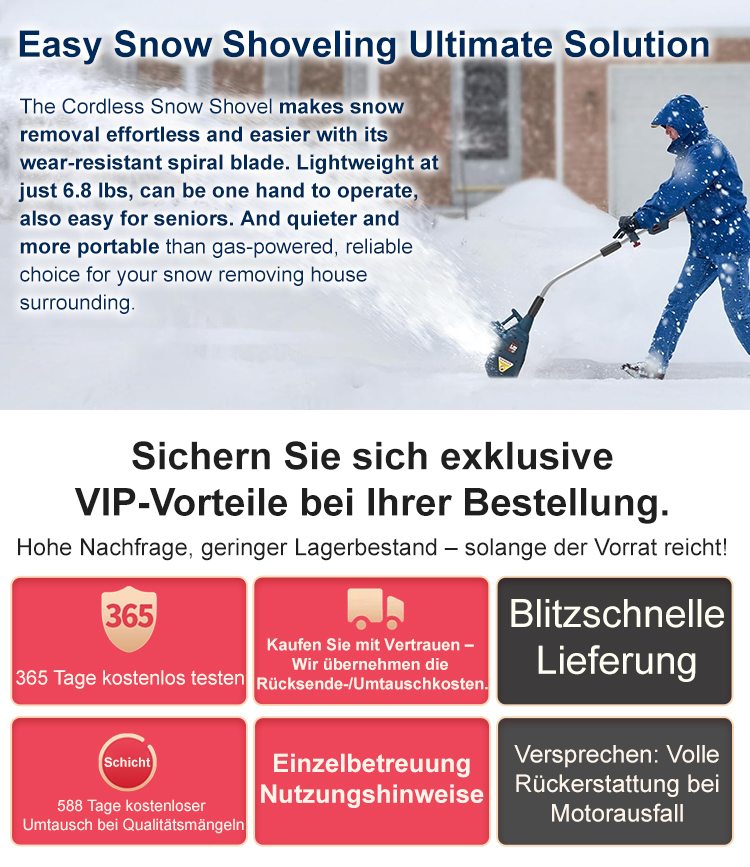 【TÜV-Zertifiziert】 Ultraleichte Hochleistungs-Akku-Schneefräse ❄️ | Einfahrt frei in 3 Min. | 12 Std. Laufzeit | Leises Design | 10 Jahre Garantie